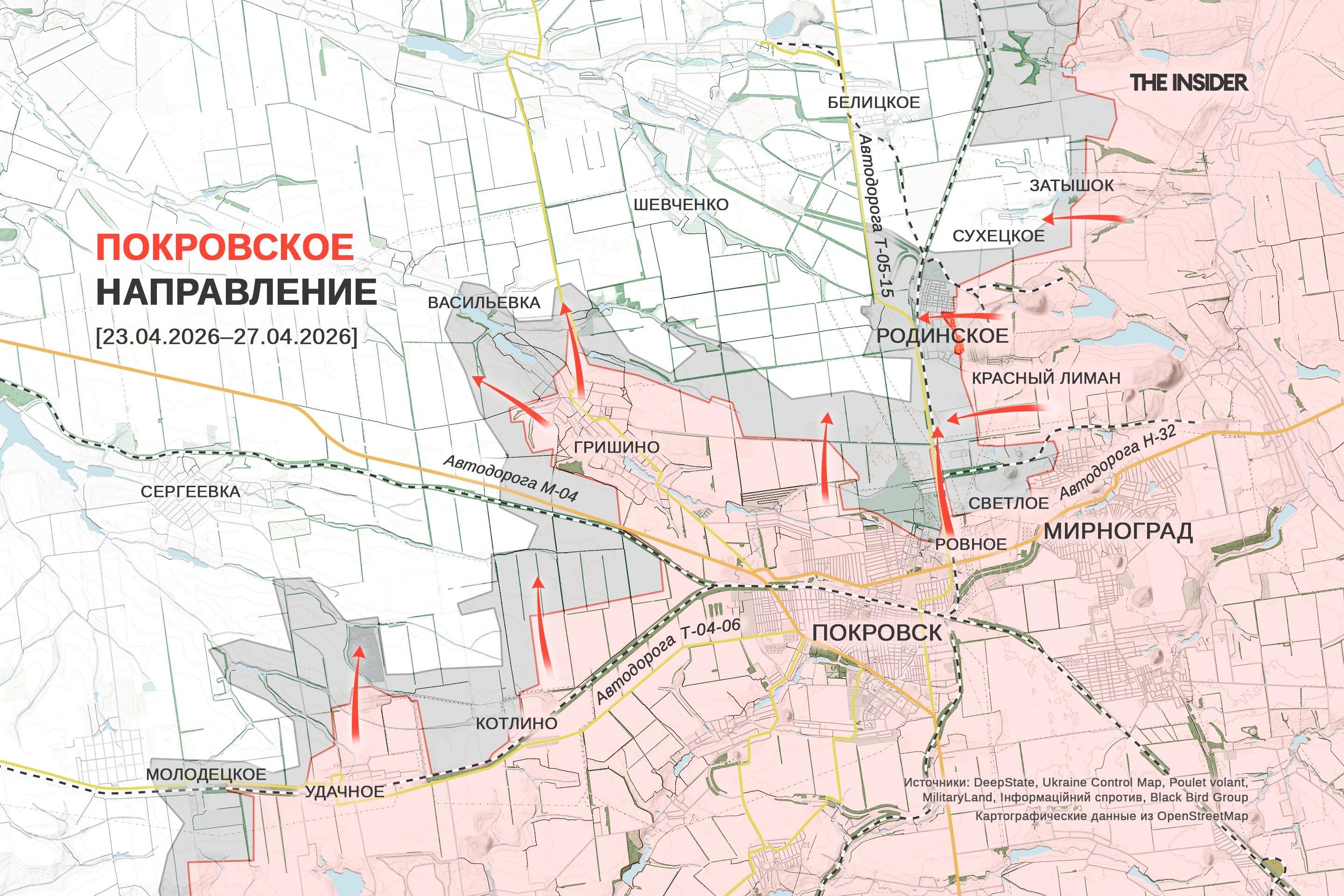 • На Покровском направлении продолжаются ожесточённые бои за Родинское к северу от Покровска.